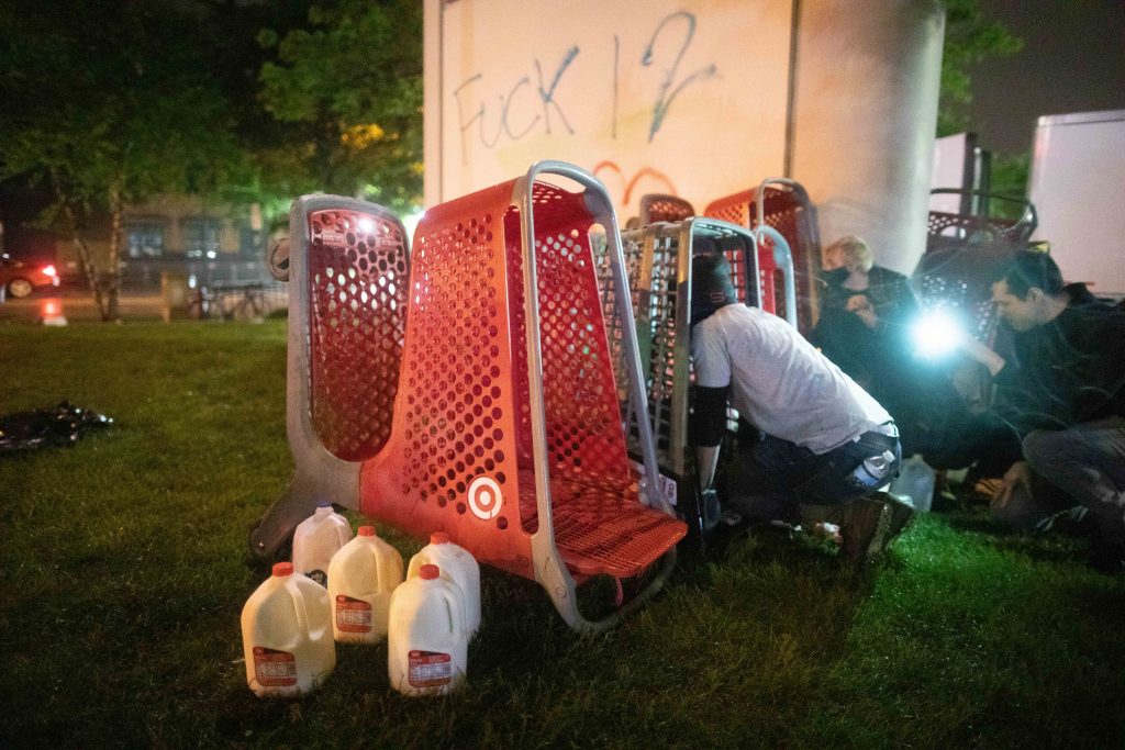 image5 Protesters set up shopping carts from Target to defend against rubber bullets and other projectiles during a protest over the police killing of George Floyd in Minneapolis on May 26, 2020. (Chris Juhn/Zenger)