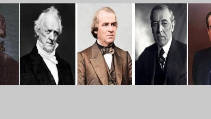 John Adams was our 2nd president and under his administration dozens of Americans including newspaper publishers and editors were arrested, fined, or jailed for speaking in opposition to him and his policies – all under the Sedition Act of 1798 – in direct contradiction and violation of the First Amendment which had been ratified less than ten years earlier. James Buchanon was our 15th president and is said to have colluded with the Supreme Court to deny personhood to African Americans leading up to the Civil War. Andrew Johnson was our 17th president and he “urged violence against his political opponents as he sought to guarantee a white supremacist republic after the Civil War,” per Polisci.brown.edu.