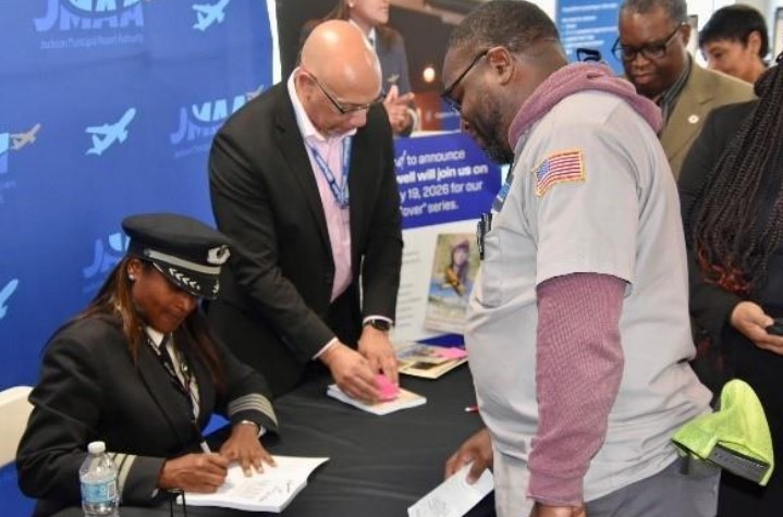 In partnership with Hudson by Avolta, the Jackson Municipal Airport Authority hosted aviation trailblazer Captain Beth Powell for a Q&A and book signing of her book, “Queen of the Skies.” The book is an inspiring story of Bessie Coleman, the first African American woman and first Native American to hold a pilot’s license. The story is based on the impact and legacy she left and for daring to soar beyond society’s limits.